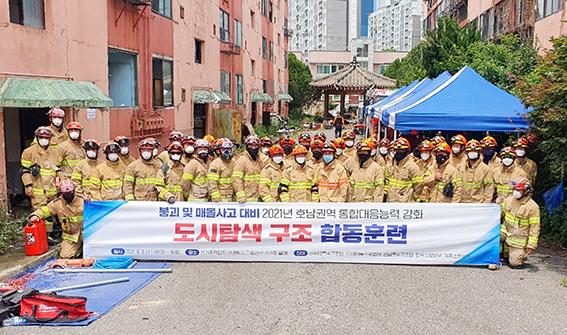 이번 훈련은 광주119특수구조단 주관으로 호남119특수구조대, 전남119특수구조대, 전북·제주 테러대응구조대 등 60여 명의 인력과 도시탐색트레일러 등 기동장비 11대, 중량물 작업용 및 절단 파괴, 파괴, 탐색구조용 장비 등 총 27종 62점의 장비가 동원돼 인명탐색과 구조훈련이 이뤄졌다.