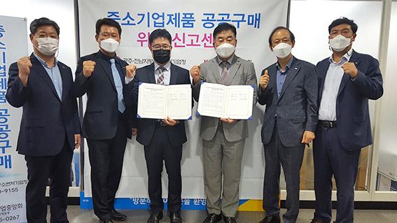 17일 광주전남중소벤처기업청과 중소기업중앙회 광주전남지역본부가 업무협약을 체결하고 '공공구매 위반 신고센터' 운영에 들어갔다. (사진=광주전남중기청 제공) 2021.06.17