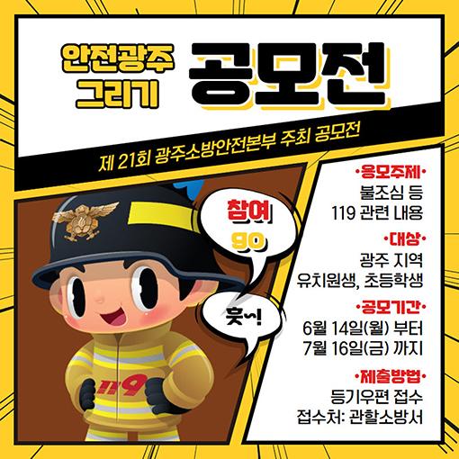 광주시 소방안전본부는 안전에 대한 관심을 일깨우고 생활화하는 계기를 마련하기 위해 7월16일까지 ‘제21회 안전광주 그리기’ 작품을 공모한다.