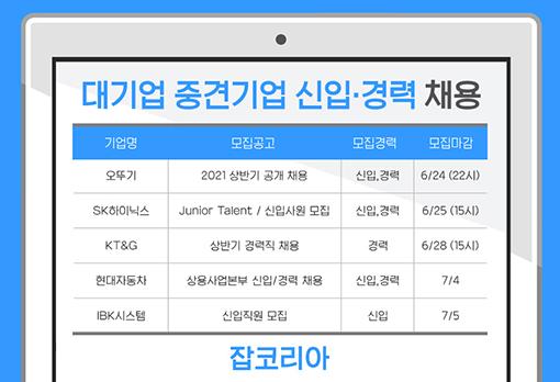 대기업 신입·경력 채용.(표=잡코리아 제공) 2021.6.22