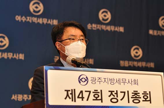 유권규 세무사가 24일 김대중컨벤션센터 컨벤션홀에서 열린 제47회 광주지방세무사회 정기총회에서 제25대 회장에 당선됐다. (사진=광주세무사회 제공). 2021.06.24.