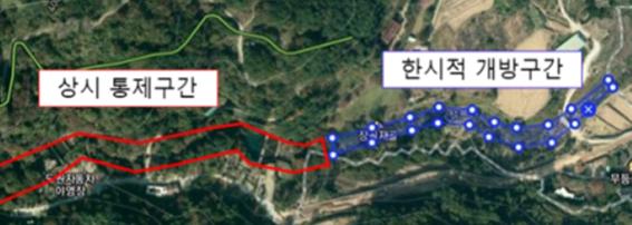 계곡은 야영장 하단 부터 장복세월교 하단 구간까지 개방된다. 단, 마당바위~도원자동차 야영장은 통제된다.
