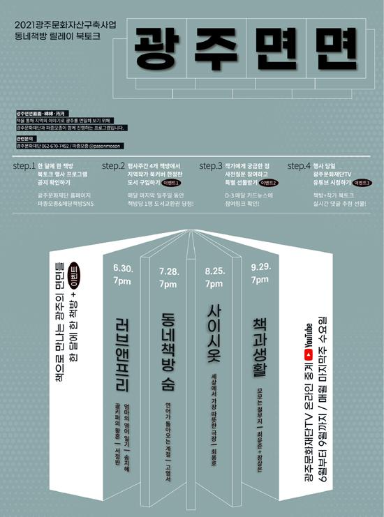 광주문화재단은 30일부터 9월29일까지 매월 마지막 주 수요일에 총 4회에 걸쳐 비대면 릴레이 북토크 ‘광주면면’ 프로그램을 운영한다고 27일 밝혔다.