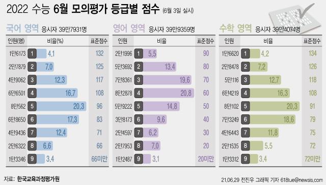 수능 출제기관인 한국교육과정평가원(평가원)은 6월 모의평가 채점 결과를 29일 이같이 공개했다.