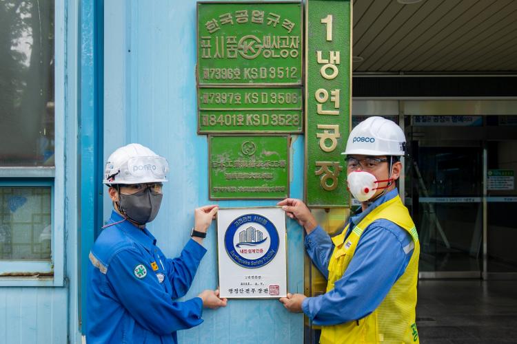 광양제철소에 따르면 ‘지진 안전 시설물 인증제’는 행정안전부·국토안전관리원 등이 내진 설계와 시공, 보강이 이뤄진 건축물에 대해 정밀 안전진단 및 평가를 하는 제도다. 지진으로부터 내진 성능이 확보된 안전한 시설물은 인증서와 명판을 발부한다.