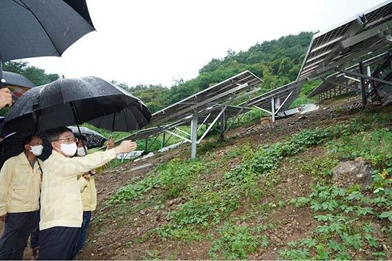 이날 시작된 장마에 대비해 최병암 청장은 폭우 피해가 우려되는 산지태양광 시설지에 대해 토사유출이나 붕괴 우려가 있는지 2차 중점 현장점검을 실시했다.