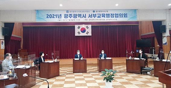 광주서부교육지원청과 광주서구청은 8일 서부교육지원청 대회의실에서 교육지원청과 서구청의 정책 연계?협력을 강화하기 위해 ‘2021년 서부교육행정협의회’ 정기회를 개최했다.