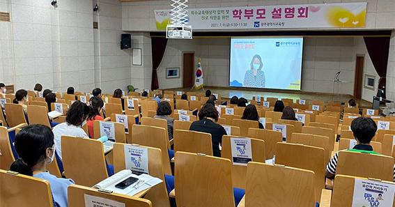 광주시교육청이 지난 9일 광주교육연수원에서 특수교육대상자 자녀를 둔 학부모 100여 명을 대상으로 ‘특수교육대상자 입학 및 진로 지원을 위한 학부모 설명회’를 개최했다.