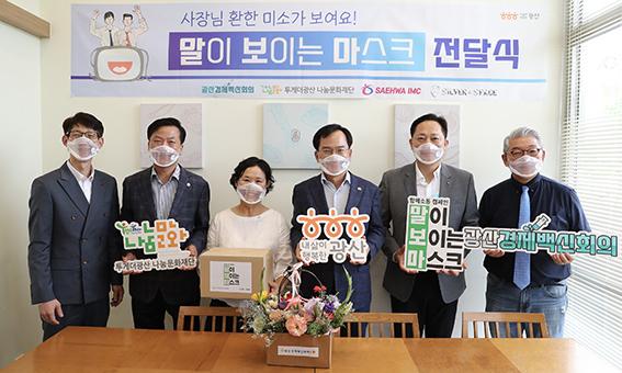 광산경제백신회의가 소상공인을 돕기 위해 나서자 투명 마스크 생산 업체도 “투명 마스크가 필요한 분들을 돕고 싶다”며 마스크를 기부하기로 했다. 기부 받은 마스크는 학생들의 언어 발달을 위해 특수학교 교사 등에게 전달될 예정이다.
