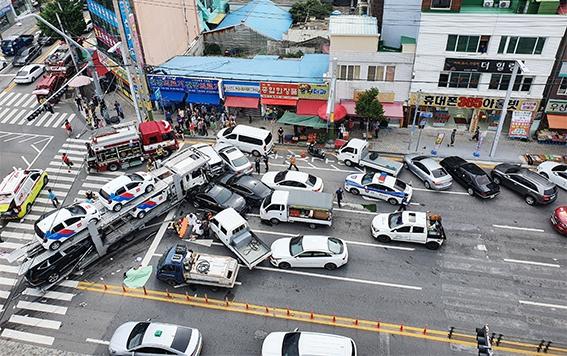한편, 이날 오전 8시56분께 여수시 서교동 한재사거리에서 완성차 운반 트레일러가 횡단보도를 건너던 보행자 5명을 들이받았다. 이 사고로 3명이 숨졌다. 또 이 사고로 다른 보행자와 운전자 등 중상자 4명(심정지 1명)·경상자 6명이 병원으로 옮겨졌다.