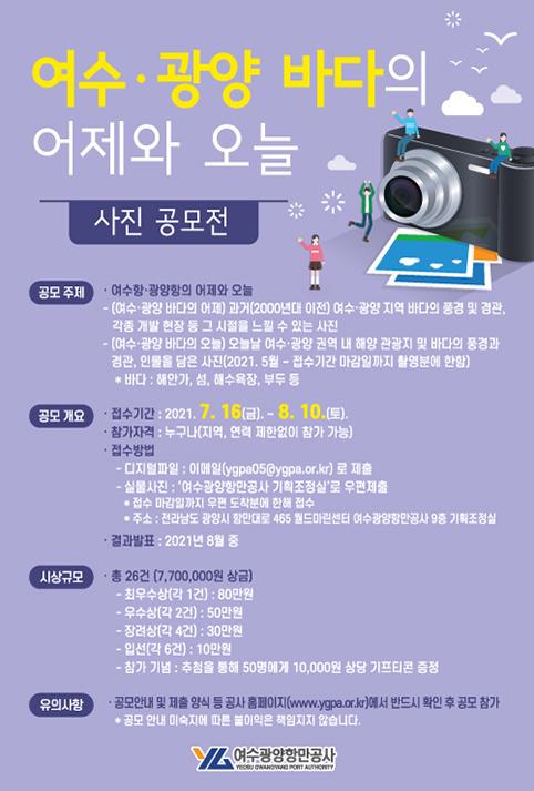 바다에 대한 추억과 해양관광에 관심있는 국민 누구나 참여 가능한 이번 공모전은 ‘여수·광양 바다의 어제와 오늘’이라는 2가지 주제로 진행된다.