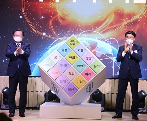 이날 오후에는 김부겸 국무총리, 이철우 경북도지사, 김병욱 국회의원, 이강덕 포항시장, 이영민 한국벤처투자 대표, 입주 벤처기업 대표단 및 최정우 회장 등이 참석한 가운데 포스코가 벤처기업 육성을 위해 운영하는 스타트업 공간인 ‘체인지업 그라운드’개관식이 열렸다.