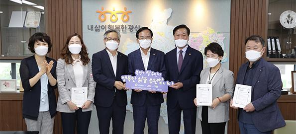 이날 구청 2층 구청장실에서 열린 협약식에는 김삼호 광산구청장, 이종만 광주하나센터장, 양동호 투게더광산 나눔문화재단 이사장 등 각 기관 관계자가 참석했다.