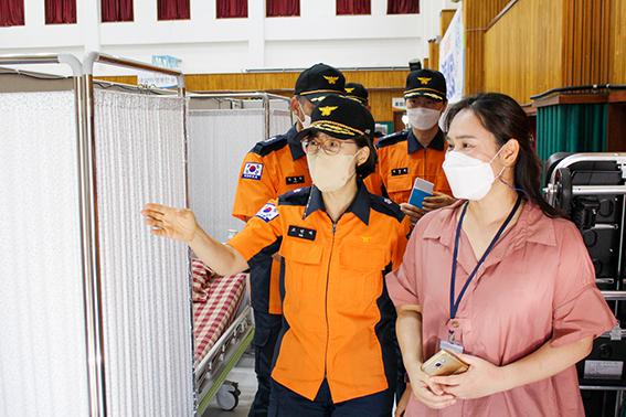 고 소방안전본부장은 이상 반응자 발생 시 이송절차와 비상상황에 대비한 피난 동선 및 접종센터 운영 전반을 살펴보고 관계자들에게 안전에 유의해 줄 것을 당부했다.