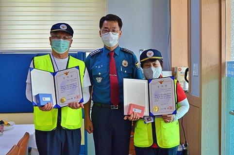 순천경찰서 최병윤 서장은 승주파출소에서 아동지킴이로 근무 중인 박모(76세, 남), 홍모(69세, 여)씨에게 지난 11일 감사장을 수여했다.