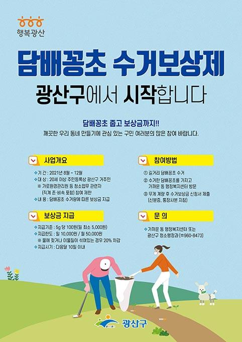 광산구에 따르면, 담배꽁초 수거보상제는 길거리 담배꽁초를 수거해오면 수거량에 따라 보상금을 지급하는 사업이다.