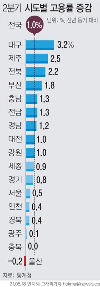 통계청은 17일 이런 내용을 담은 '2021년 2분기 지역경제동향'을 발표했다.
