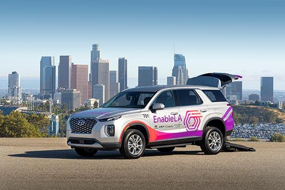 현대차·기아는 미국 캘리포니아주 로스앤젤레스에서 장애인과 노약자 등 교통약자들의 이동편의 증진을 위한 휠체어용 차량(WAV) 차량호출 서비스 실증사업 '인에이블엘에이(EnableLA)'를 시작했다고 18일 밝혔다. 서비스명인 EnableLA는 '가능하게 하다' 라는 뜻의 Enable과 첫 실증지역인 LA로부터 따왔다.