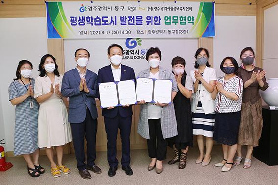 동구(청장 임택)는 지난 17일 (사)광주광역시평생교육사협회(회장 김동례)와 주민들에 대한 양질의 평생학습 기회 제공 등 평생학습도시로 완전한 정착을 위한 상호업무협약을 체결했다고 밝혔다.