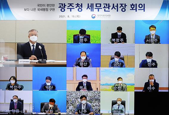 광주지방국세청은 19일 이판식 청장과 15개 세무서 서장 등이 참석한 가운데 온라인 비대면 방식으로 '2021년도 하반기 광주청 세무관서장 회의'를 개최했다. (사진=광주국세청 제공). 2021.08.19.