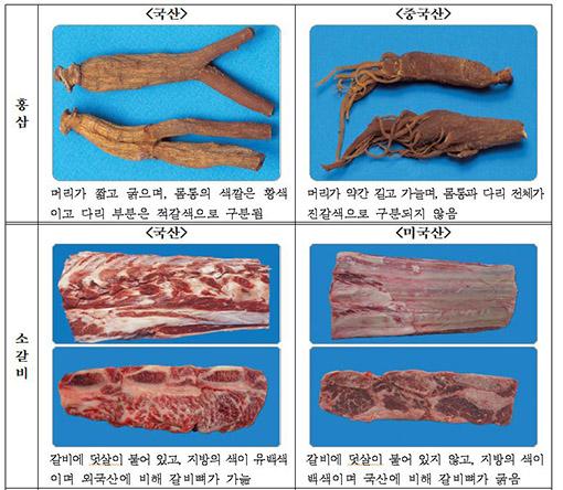 주요 내용을 보면 홍삼의 경우 국내산은 머리가 짧고 굵으며 몸통은 황색이고 다리는 적갈색이다. 반면 중국산은 머리가 약간 길고 가늘며 몸통과 다리는 전체가 진갈색이다.