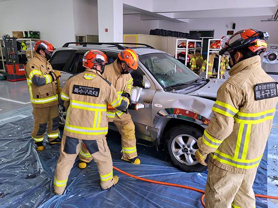 광주시 소방안전본부는 27일부터 3일간 119특수구조단 청사에서 구조대원 22명이 참여한 가운데 교통사고 대비 인명구조 특별훈련을 실시한다.