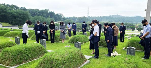 참배에는 9월1일자 유·초·중등 교장·교감·교육전문직원 승진 및 전직자 71명이 참여했다. 참배는 코로나19 방역 수칙을 준수하며 3회로 나눠 실시됐다.