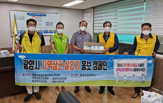 광양시상공인협의회가 광양상공회의소 후원으로 ‘지역상권 살리기 홍보캠페인’을 펼쳐 광양시민들이 2차 긴급재난생활비와 국민지원금을 지역상공인 점포에 사용해 줄 것을 호소했다.
