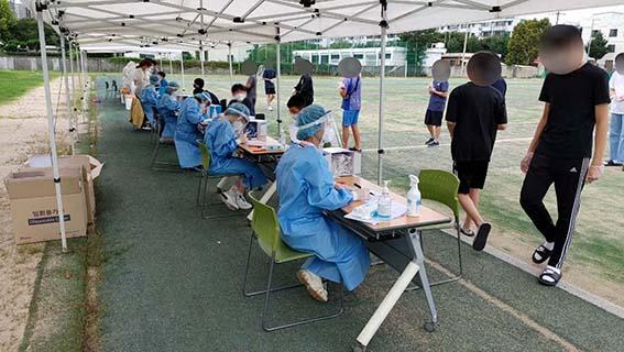 지난 5일 광양의 한 중학교에서 학생·교직원 대상 코로나19 전수검사가 진행되고 있다. /전남교육청 제공 2021.09.06.