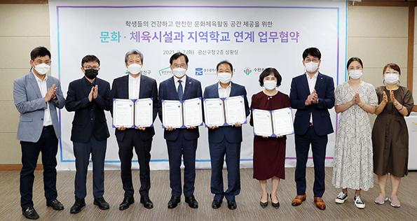 광산구는 7일 광주시 서부교육지원청, 수완초등학교, 광산구 시설관리공단과 관내 학생들의 문화·체육활동 공간 제공을 위한 업무협약을 체결했다.