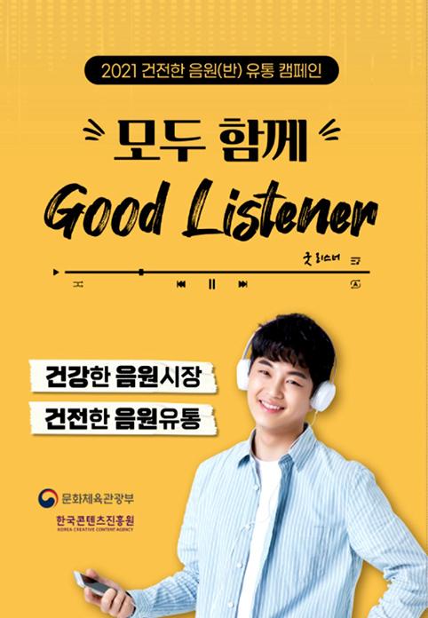 올해 캠페인은 건강한 음원시장 조성을 위해 모두가 건전한 음원유통에 참여하는 '굿 리스너' 확산에 중점을 두고 진행된다.