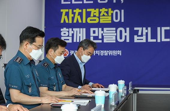 김창룡 경찰청장이 31일 광주광역시자치경찰위원회를 방문해 관계자들과 면담을 하고 있다. (사진=경찰청 제공) 2021.08.31.