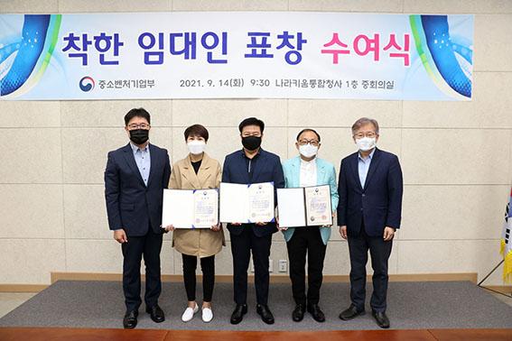 표창은 코로나19 확산 상황, 임대인의 편의를 고려해 각 지방청별로 추석 전 수여하되 광주·전남지역의 경우 중기부장관 지역 광폭 행보와 연계해 권칠승 장관이 직접 수여했다.