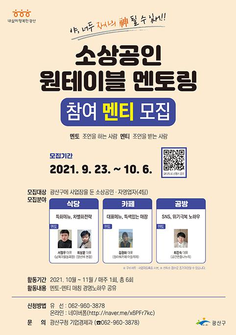 광산구(구청장 김삼호)가 ‘광산 장사의 신’의 비법과 노하우를 전파하는 소상공인 원테이블 멘토링에 참여할 소상공인, 자영업자를 모집한다.
