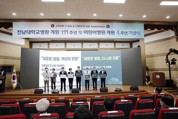 전남대병원은 24일 오후 광주 동구 전남대학교 의과대학 명학홀에서 개원 111주년, 전남대어린이병원 개원 4주년 기념식을 갖고 '새병원 비전'을 제시했다.