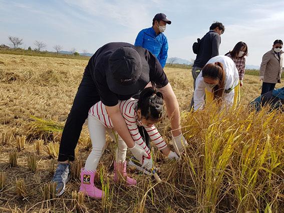 벼를 낫으로 직접 벤 뒤 개상·홀태·그네·풍구 등 여러 재래 농기구를 사용해 전통 방식으로 탈곡까지 하는 체험행사다.