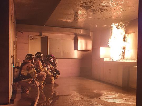 특히 화재현장에서 발생할 수 있는 롤오버, 플래쉬오버 등 위험한 상황에 장소별 화재진압과 문개방, 배연 등에 중점을 두었다.