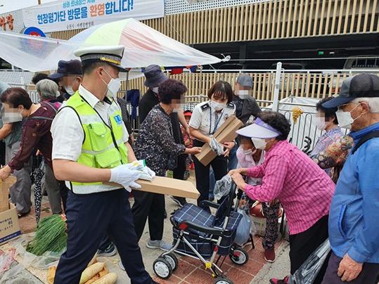 순천경찰서는 전남자치경찰위원회에서 추진 중인 대형교통사고 예방 활동의 일환으로 수확철 음주 등으로 인한 농기계 안전사고와 농촌지역 어르신들의 교통사망사고 예방을 위해, 지난 27일 아랫시장을 찾아 농촌 어르신들을 대상으로 찾아가는 교통안전교육 및 대형 교통사고 예방 홍보 활동을 실시했다.