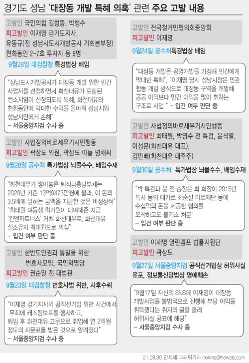 화천대유 등 일부 민간업체가 이 사업을 통해 막대한 이익을 얻은 배경에 이재명 경기도지사의 업무상 배임이 있었는지와 정치권·법조계에 뇌물이 있었는지 여부를 밝히는 것이 검찰 수사의 핵심이 될 것으로 보인다.