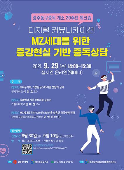 광주 동구 중독관리통합지원센터는 지난 29일 개소 20주년을 맞아 온라인 줌(ZOOM)을 통해 실시간으로 ‘디지털 커뮤니케이션! MZ세대를 위한 가상현실 기반 중독상담’ 워크숍을 개최했다고 밝혔다.