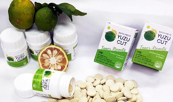 유주컷 제품은 청유자와 황유자 추출물 분말 총 30%를 함유하고 있다. 특히 콜라겐과 다이어트 성분인 가르시니아캄보지아 등을 첨가해 제조한 타블릿은 남녀노소 누구나 편하게 섭취할 수 있는 것이 장점이다.