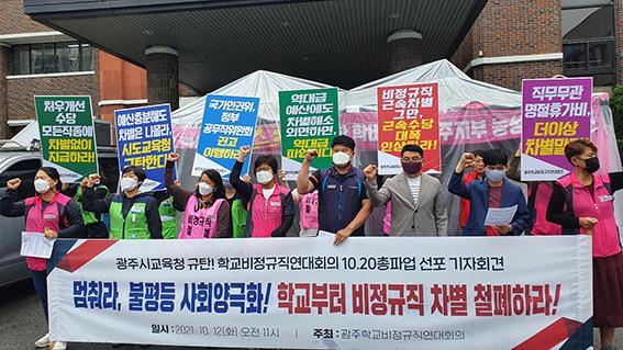 '비정규직 차별 철폐' 등을 주장하며 광주시교육청과 임금교섭을 벌이는 광주학교비정규직연대회의가 총파업에 들어간다.