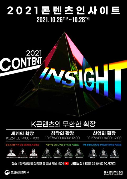 콘텐츠진흥원은 콘텐츠 창작자와 현업인을 위한 '2021 콘텐츠 인사이트'를 오는 26일부터 28일까지 총 3일간 온라인으로 개최한다고 21일 밝혔다.