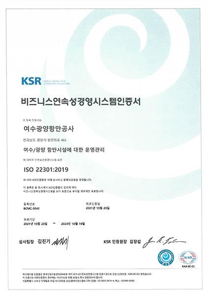 여수광양항만공사는 ‘재해경감 우수기업’ 인증에 이어 ISO22301(비즈니스연속성경영시스템) 국제표준 인증을 취득했다.