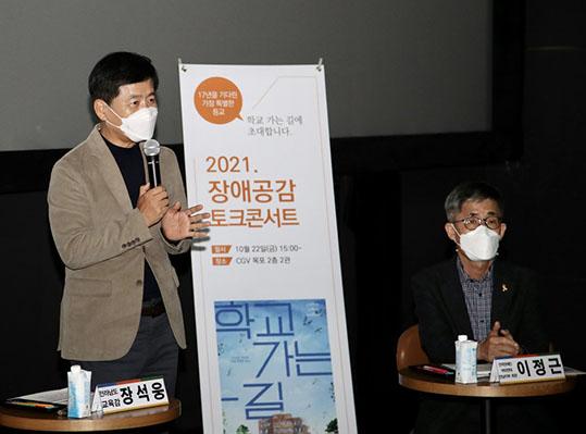 이 날 토크콘서트에서 객석으로부터 전남 특수교육의 현안과 향후 추진 방향에 대한 질의를 받은 장석웅 교육감은 “코로나 19상황에서 특수교육대상학생의 전면 등교는 물론 학습꾸러미와 한시적 지원인력 제공 등으로 수업 결손 방지를 위해 맞춤형 특수교육을 강화하고 있다”고 말했다.