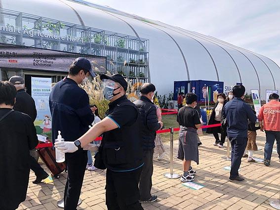 박람회장 현장에서는 개인식별 QR 출입증 발급, 전시관별 인원 카운팅, 입장 인원 CCTV 실시간 모니터링, 방역관리 요원 배치, 수시 환기 및 살균 소독 등 치밀한 방역관리 시스템을 적용하고 있다.