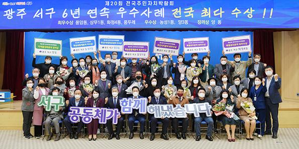 광주 서구가 전국주민자치박람회에서 우수사례 6년 연속 전국 최다 수상의 영예를 안았다.
