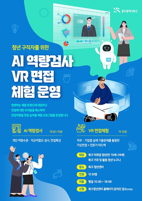 광주시 북구는 변화하는 채용 트렌드 적응에 도움을 주고자 연말까지 청년 구직자를 대상으로 ‘AI(인공지능) 역량검사 및 VR(가상현실) 면접 체험 프로그램’을 시범 운영한다고 4일 밝혔다.