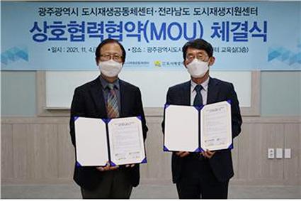 전남도시재생지원센터와 광주도시재생공동체센터는 지난 4일 오후 4시 광주도시재생공동체센터 1층 회의실에서 도시재생 활성화를 위한 상호 협력 MOU를 체결했다.
