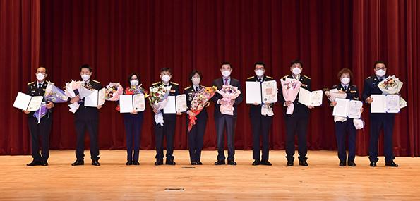 이날 기념식에서는 김희철 북부소방서장 등 5명이 정부 포상을, 정승태 소방경 등 3명이 행정안전부장관 표창을, 황준호 소방위 등 4명이 소방청장 표창을, 정윤재 의용소방대원 등 4명과 송정사랑병원(단체)이 시장 표창을 받았다.